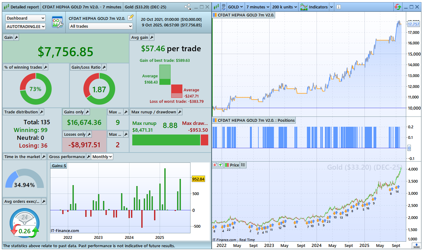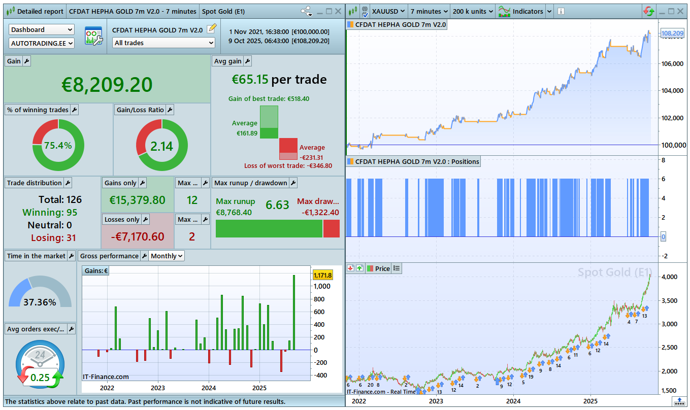 General comments: Very stable long-only strategy for GOLD. So simple entries and position handling. The key is in the entries.